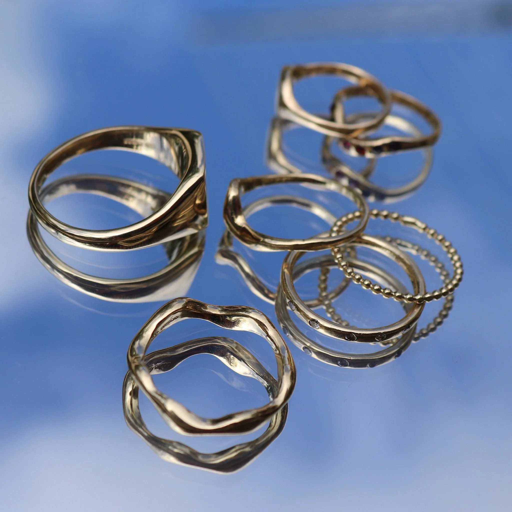 Meg, Bombe Ring, Oval Signet & two Gemstone Stacking Rings